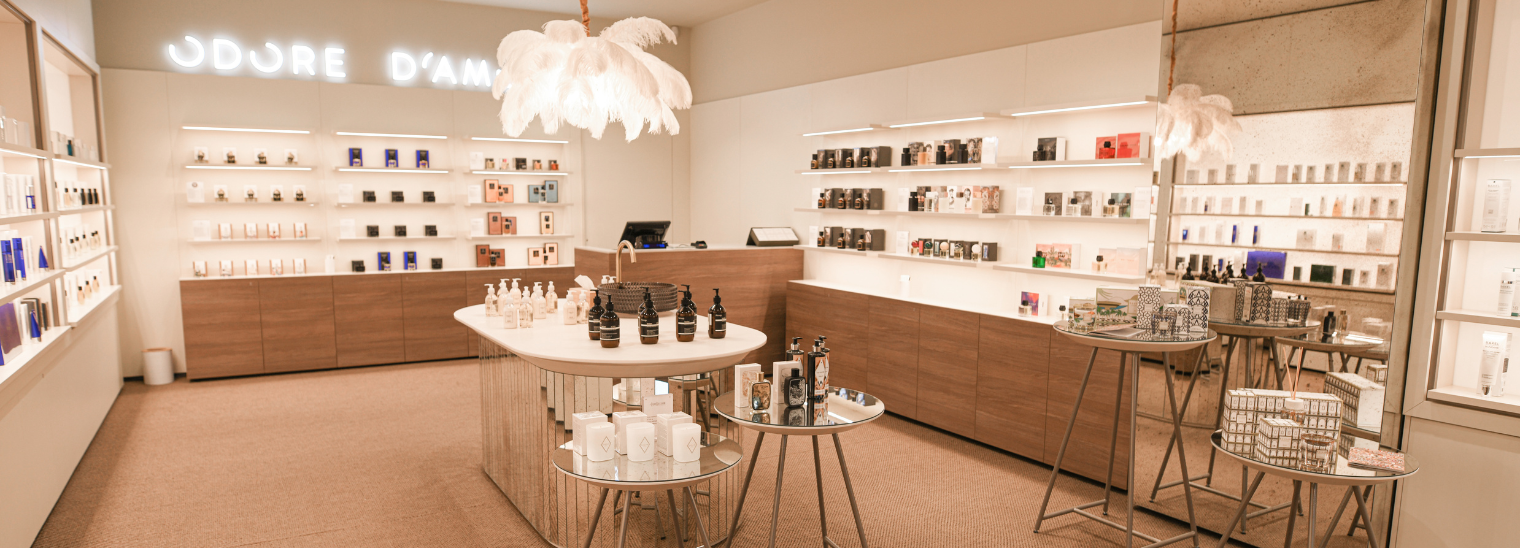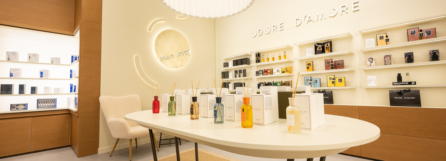 PC Europoje įsikūrusi Odore d'amore parduotuvėje galite pasimėgauti ne tik aukštosios parfumerijos kūriniais, bet ir burbuliukais ar kava. Įrengtas įmantrus baras kvies į dar malonesnę kvapų kelionę.